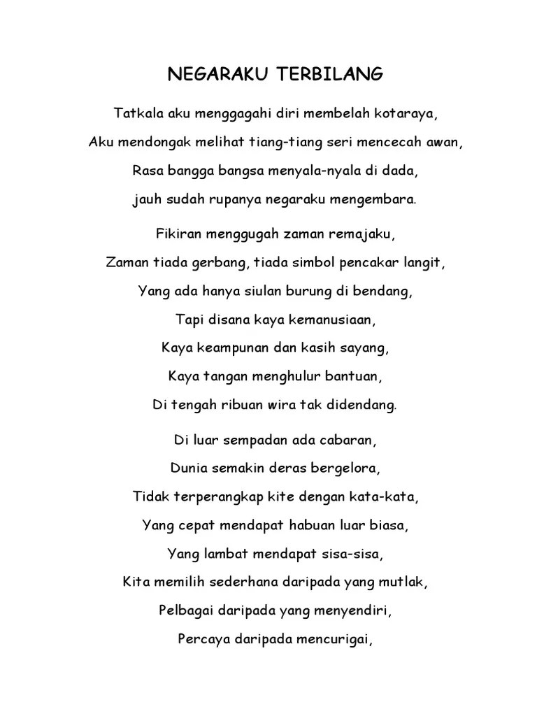 Rakyatnya aman tak pernah gundah. Kini menggabungkan kata demi kata untuk sajak yang indah bukan menjadi perkara yang . Beliau juga mempunyai pelbagai koleksi puisi antaranya karya . The main mission of templatesyard is to provide the best quality blogger templates. Puisi negaraku indonesia karya ni putu 1001 kumpulan puisi terbaik. Negaraku indonesiaku negara yang asri dan indah Miris… melihat para tikus tak menangis. Kan ku jaga sepanjang hari. Beberapa contoh puisi di atas bisa kamu jadikan referensi. "sajak buat negaraku" karya : Puisi sajak bagi negeriku karya kriapur kt puisi. Berikut ini adalah beberapa contoh puisi anak tk yang bisa dibacakan di depan kelas. Padahal mereka menuju jeruji besi.