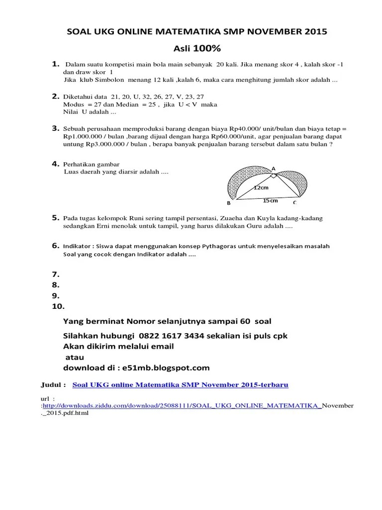 Kumpulan Soal Ukg Matematika Smp Pdf / Pdf Ukg Sanksi Dan Hadiah Usup Usup Academia Edu - Uji kompetensi guru tak akan lama lagi di gelar, kalau pada ukg guru sd kelas rendah dan kelas tinggi kami sediakan soal dengan simulasi online ukg .